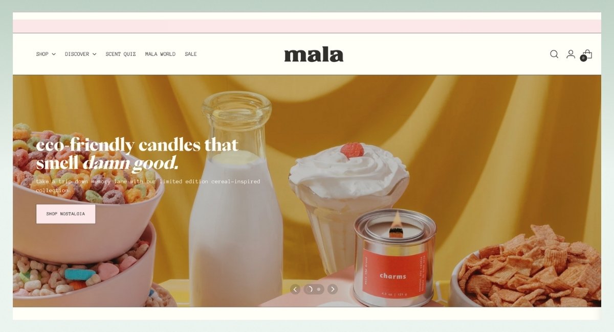 Mala the Brand makes fancy, handcrafted candles. They take pride in how they carefully pour their soy wax and dream up unique scents inspired by places they've been and things they've done. Their Shopify store is super pretty to look at, with clean pictures that show off their candles perfectly.